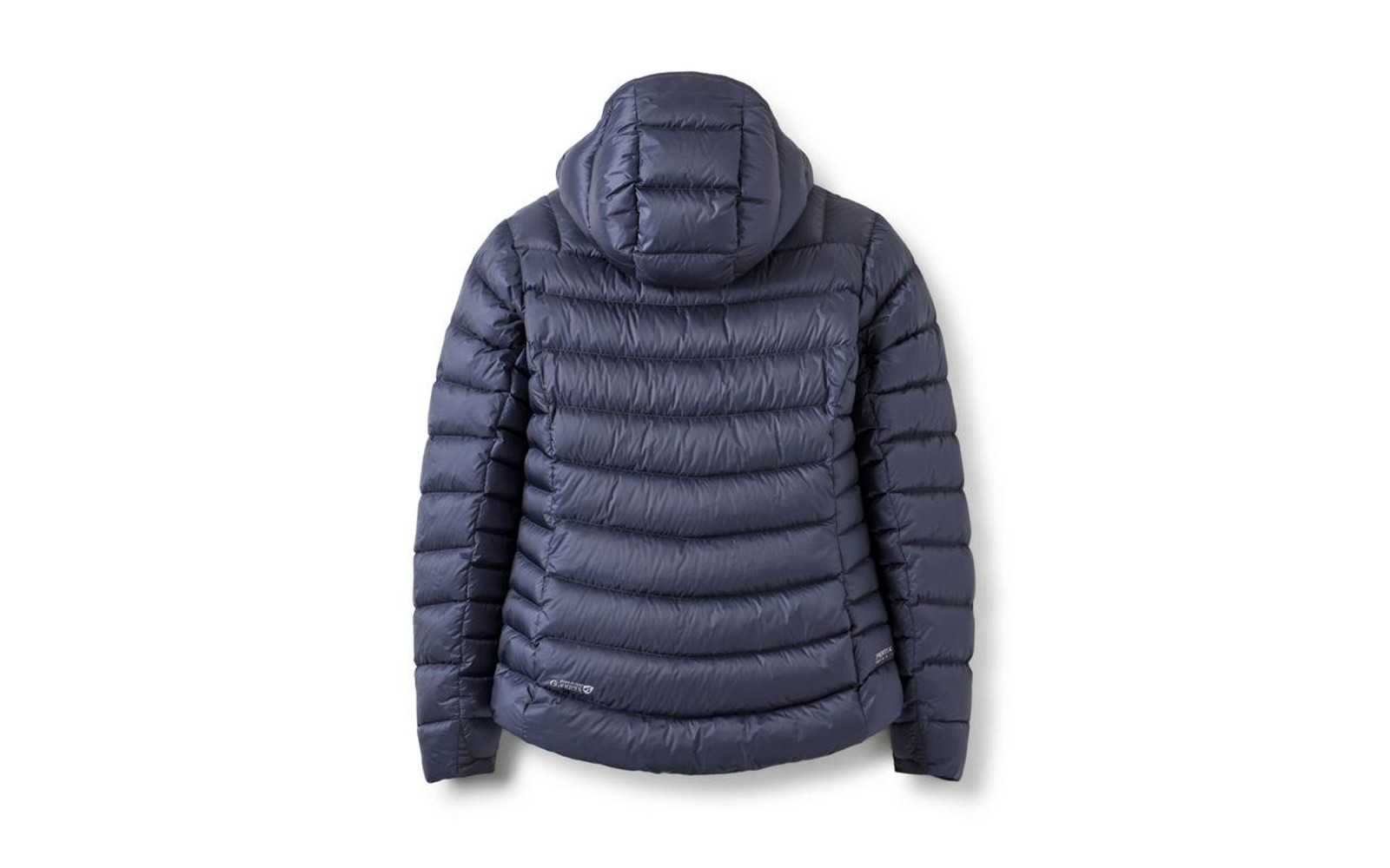 - Relleno térmico de 170 g (talla M) de pluma de ganso europeo con un excelente fill power de 800 cuin, un buen porcentaje del 90 %, tratamiento hidrófobo Nikwax® (mantiene eficacia en ambiente húmedo), certificado RDS (buen trato animal) y dispuesta en tabicado optimizado (tamaño zonificado para un reparto idóneo de la pluma minimizando el volumen) con separación mediante costura.