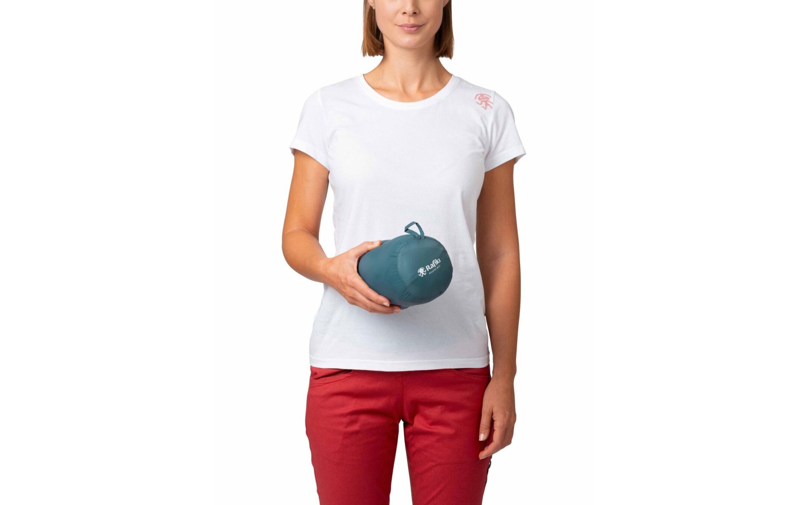 El relleno de plumón de pato certificado y el material exterior de poliamida reciclada con tratamiento DWR sin PFC proporcionan una protección perfecta en una noche fresca de verano o durante un otoño ventoso. Además, la chaqueta se puede comprimir fácilmente en su bolsa incluida, ideal para usar también como almohada improvisada.