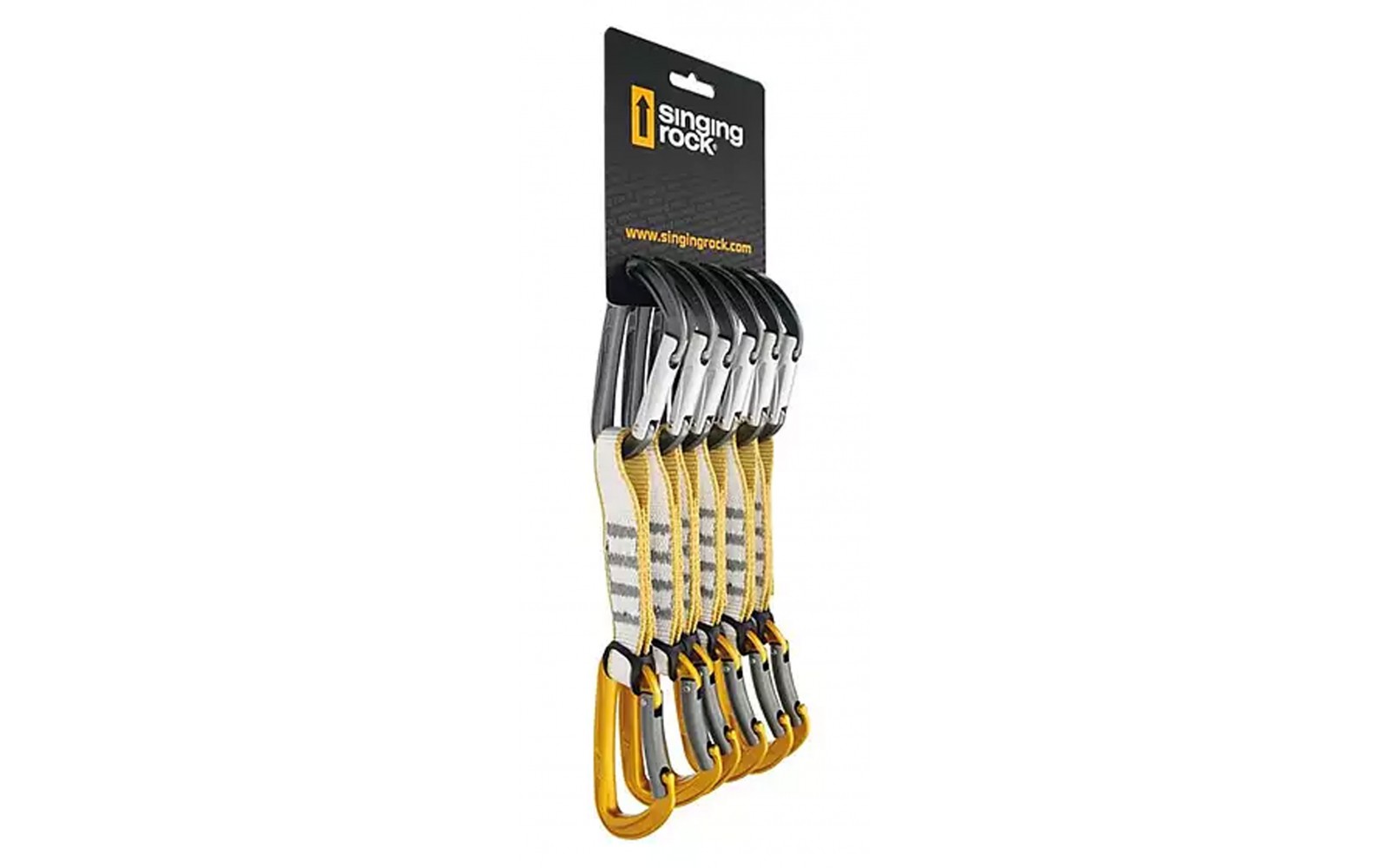 Set de 6 cinco cintas expres cortas, compactas, manejables y resistentes, tanto para escalada deportiva en general como para trabajar rutas.