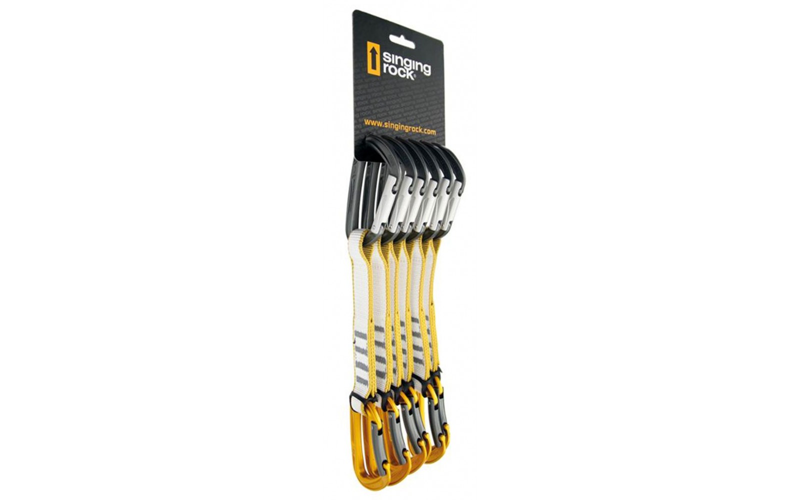 Set de 6 cinco cintas expres cortas, compactas, manejables y resistentes, tanto para escalada deportiva en general como para trabajar rutas.