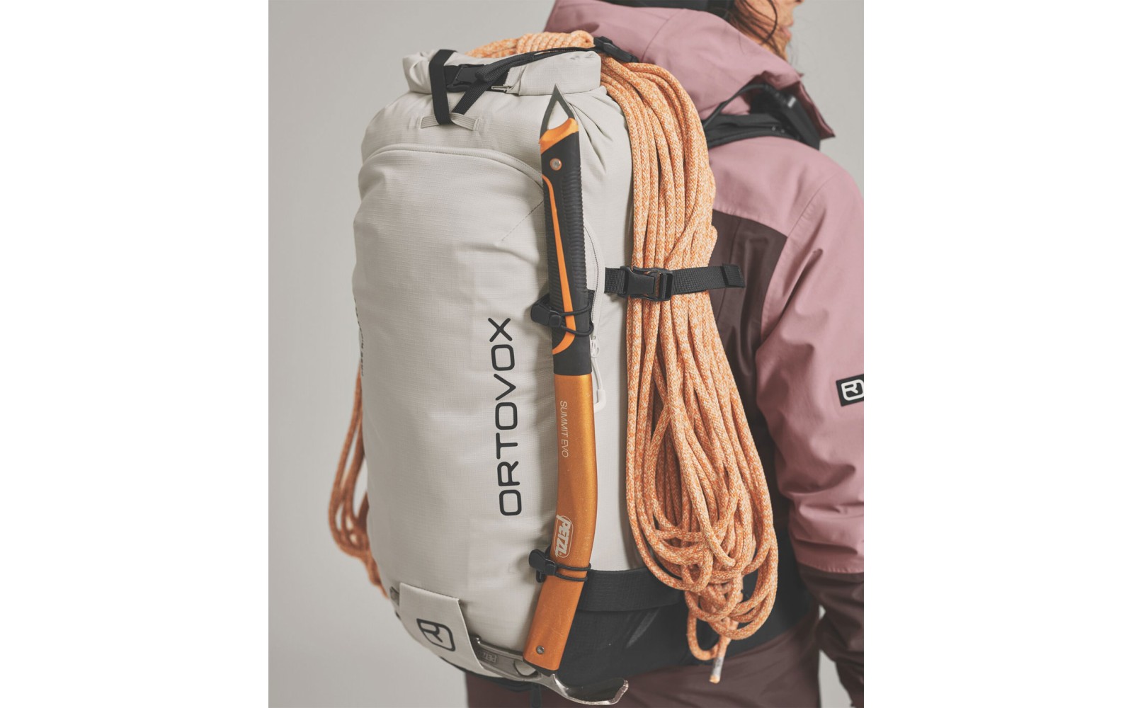 Para ajustar la mochila de forma óptima durante la actividad, puede comprimirse rápidamente mediante las correas laterales integradas, quedando plana y ajustada como una segunda piel en la espalda.