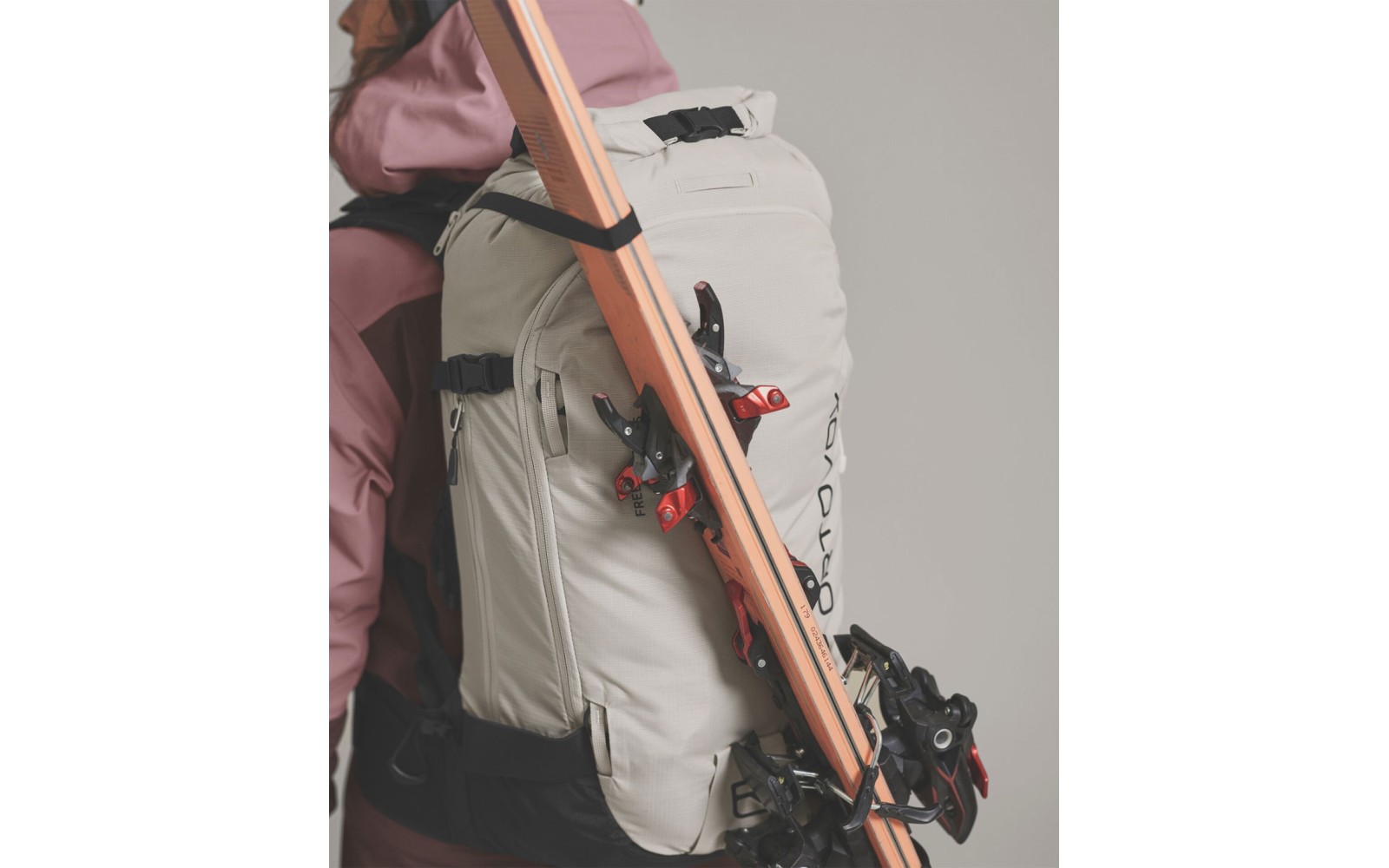 La mochila de freeride también ofrece espacio suficiente para pieles de foca y crampones para esquí, garantizando una flexibilidad adicional en la montaña.