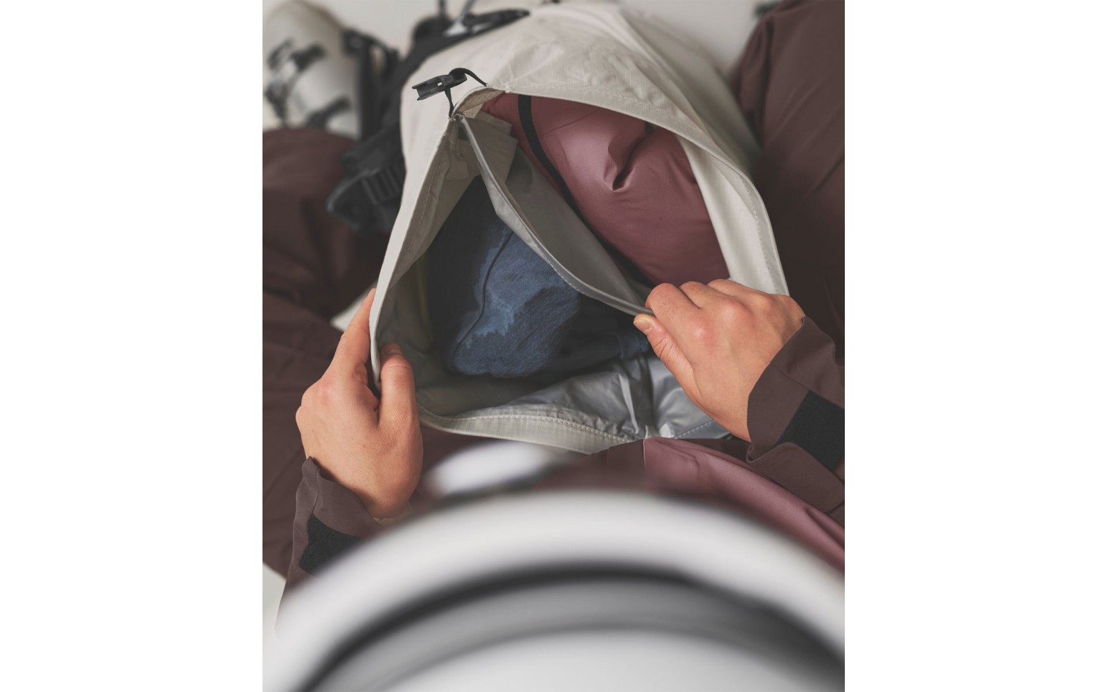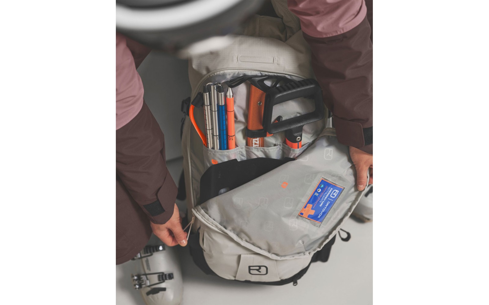 En el interior, la parte posterior de la mochila puede equiparse con el protector de espalda CLASP SPINE PROTECTOR.