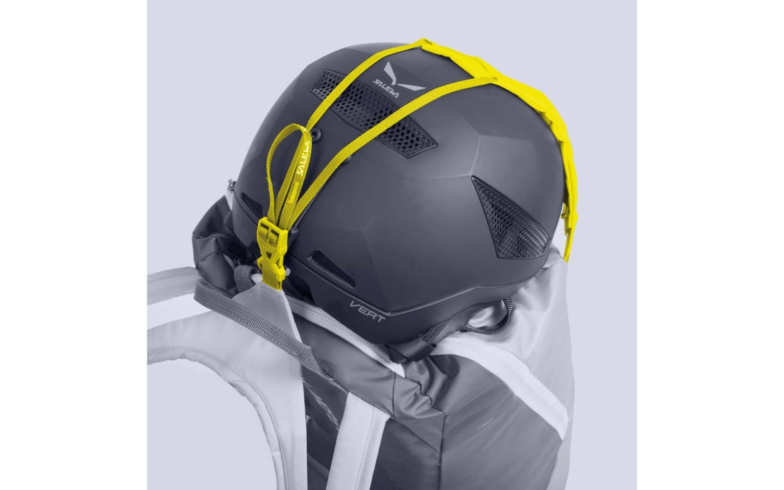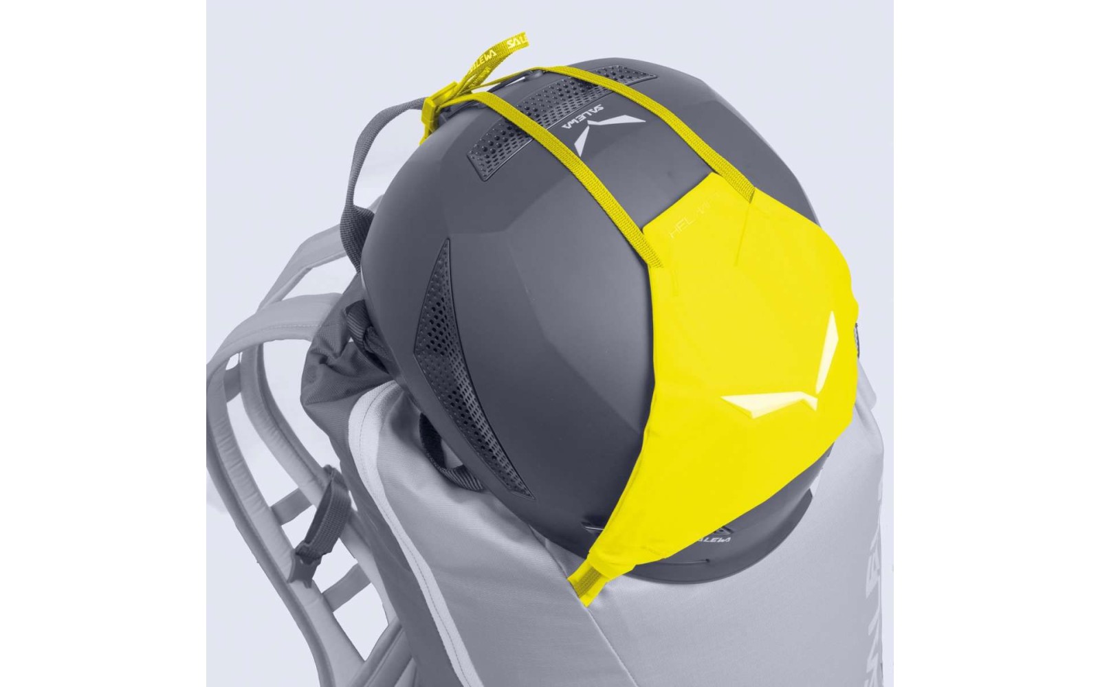 - El sistema de compresión doble de SALEWA® te permite ajustar el volumen con una sola mano y atarte el casco de forma segura, mientras que los tirantes divididos y finos ofrecen buena flexibilidad, en especial durante actividades rápidas o movimientos dinámicos.
