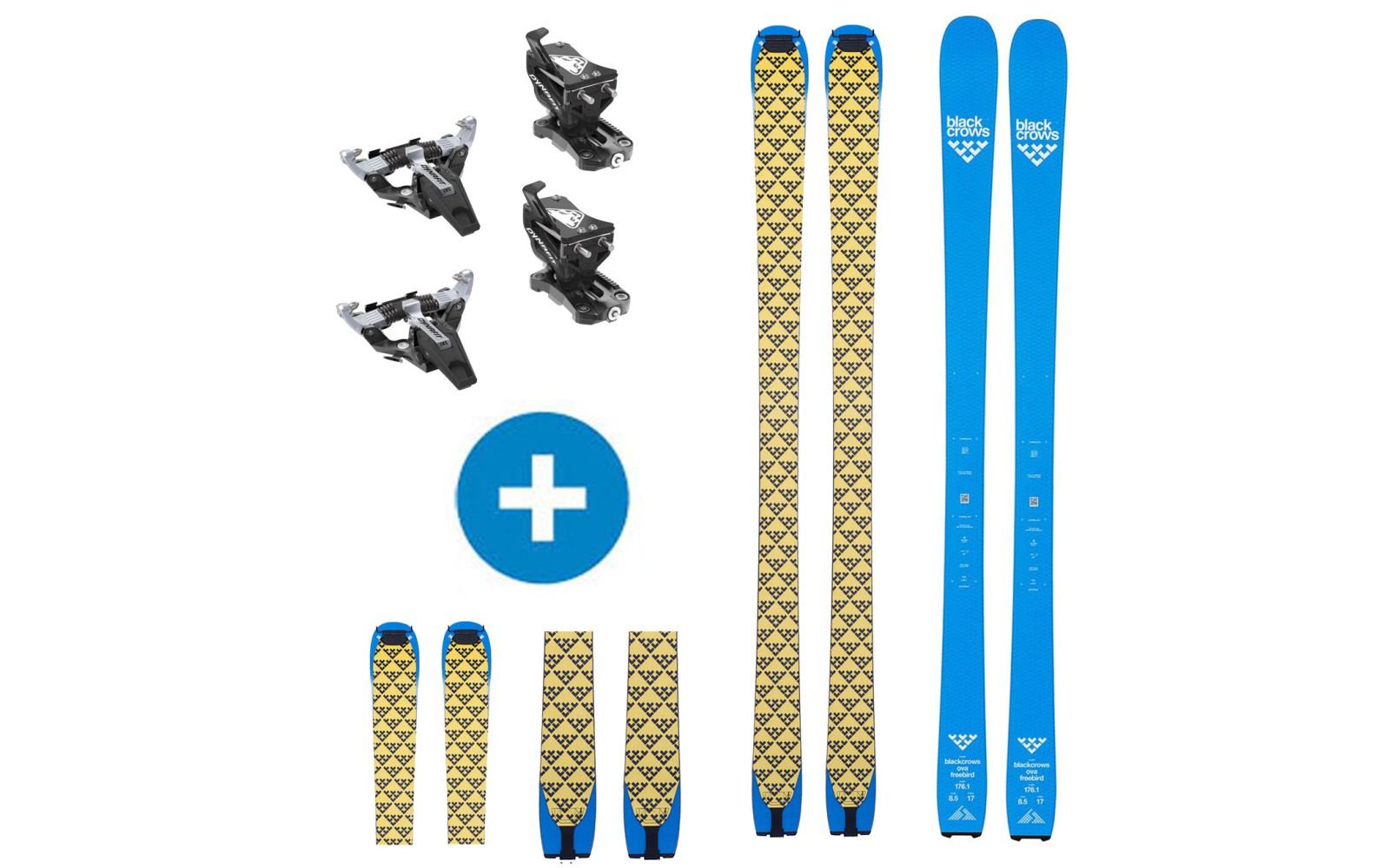 Pack de esquí de travesía para mujer compuesto de los esquís Black Crows OVA FREERBID, la fijación Dynafit SPEED TURN y las focas Black Crows OVA MIX.