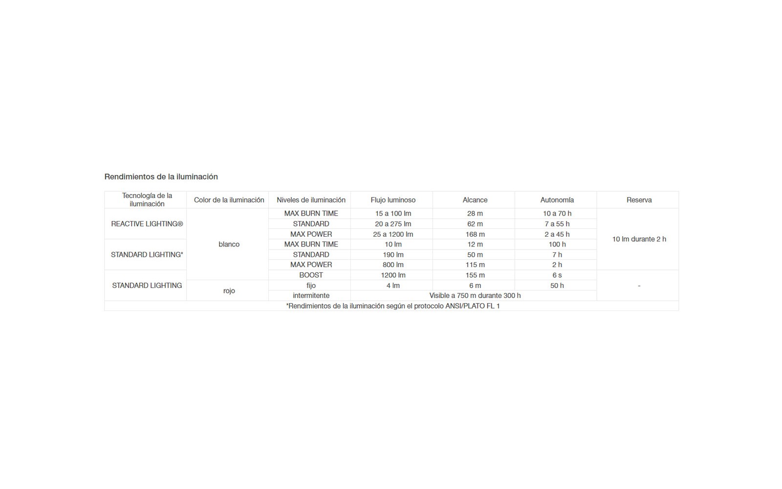 - Se adapta a las actividades largas gracias a su autonomía mínima garantizada de 7 h en potencia intermedia, con el modo REACTIVE LIGHTING.