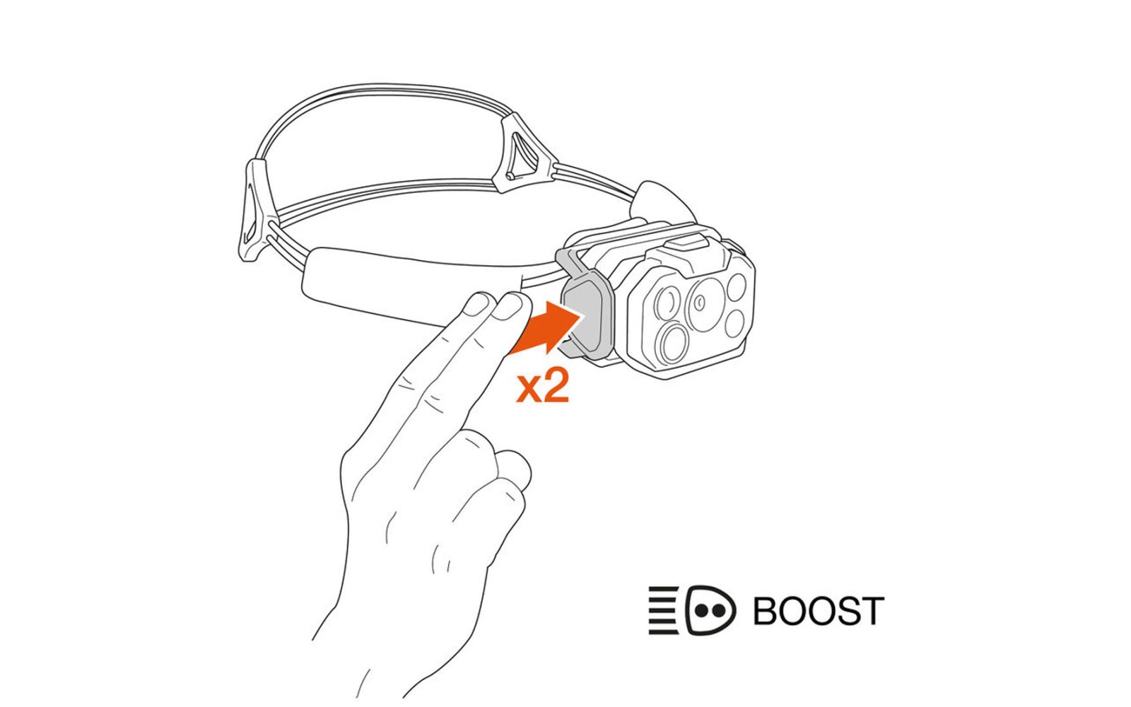 - Modo BOOST durante 6 segundos, accesible rápidamente por una doble pulsación en el lateral de la linterna, ideal para facilitar el reconocimiento de itinerario.
