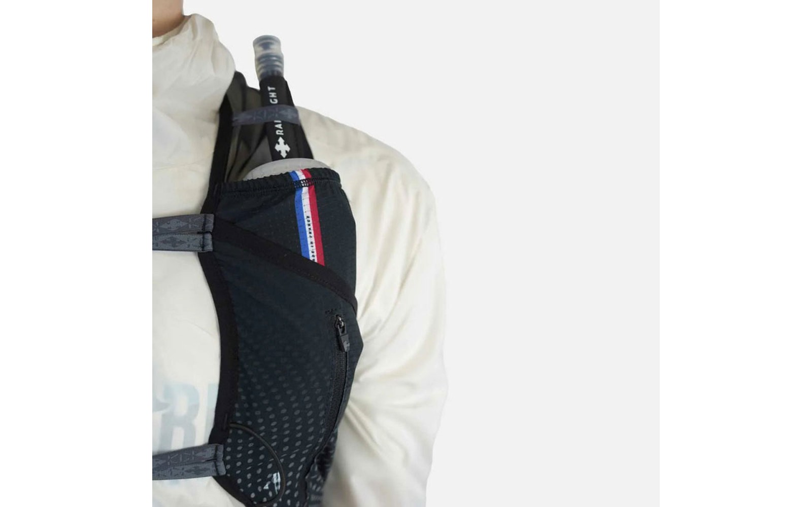 Mochila tipo chaleco, diseñada para tus carreras por montaña, que se adapta perfectamente al cuerpo.